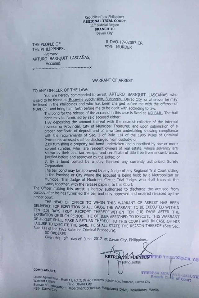 Bench Warrant Of Arrest Philippines